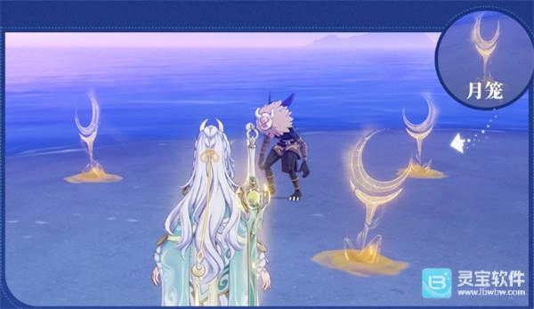 1、反应触发后,场上将浮现3个被岩元素光泽托起的「月笼」,协助大家战斗!