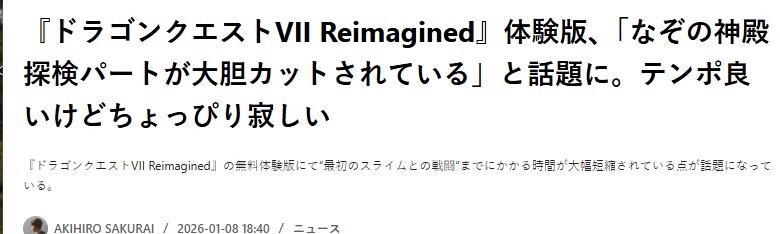 玩家试玩《勇者斗恶龙7:重制版》后反馈:加快的游戏节奏获点赞