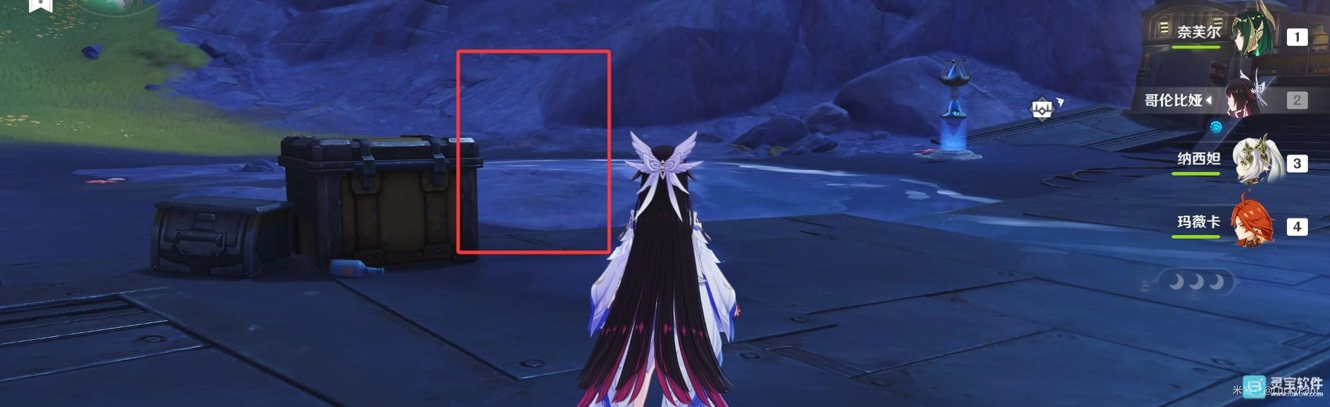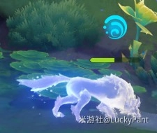 第二处:此处触碰狼的幽影,使其进入月凝壁障,引导獭懒羊移动至此处,并向月凝壁障投掷「种核」使獭懒羊对其释放一次强力的月矩力波使其融解,继续追随并送回