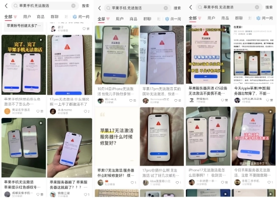 事实上,自10月13日晚开始,就有大量用户反映iPhone17及iPhone 17 Pro Max存在无法激活的问题。