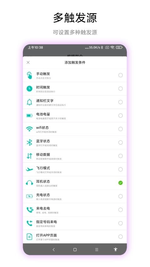 手机触发器App是一款依托手机传感器运行的自动化控制应用,用户可通过设定各类条件与动作,达成一系列智能控制效果。