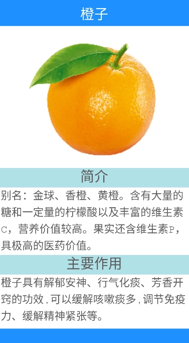 挑选橙子时,能够了解到橙子的简要说明以及相关的养生常识。