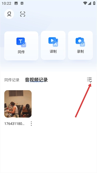 在【音视频记录】页面,找到右上角的列表样式按钮。