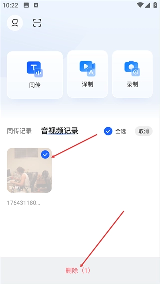 完成确认删除操作后,返回【音视频记录】页面,页面上的对应记录就会消失不见。
