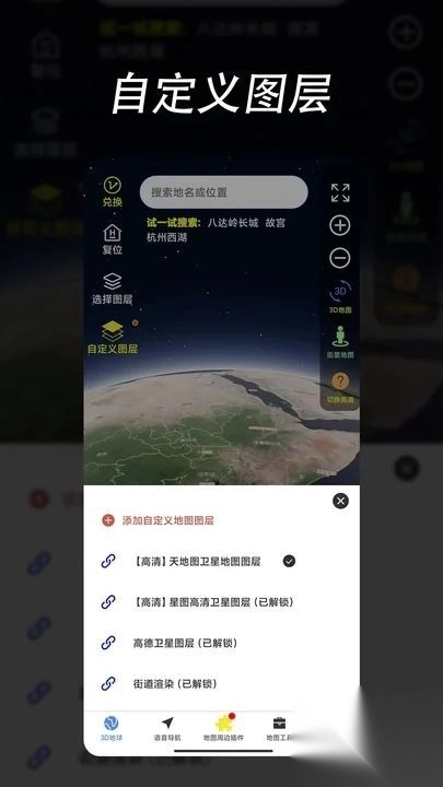 环球高清卫星地图是一款相当出色的地图导航软件。它能够全面获取各地的地图信息,其上展现着优质的地图服务模式。有了它,出行会更具安全性,无需再担忧出行时辨别不清东南西北。