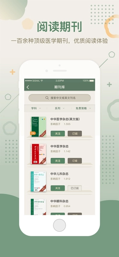 阅读期刊一百余种顶级医学期刊,优质阅读体验