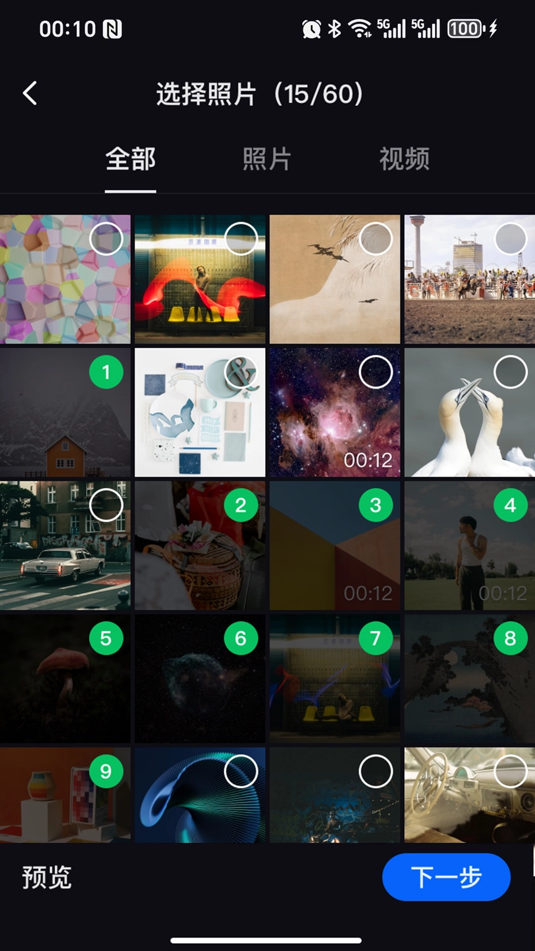 您可以从手机相册里勾选想要添加的照片或视频素材,系统支持同时选择多个文件进行批量导入操作。