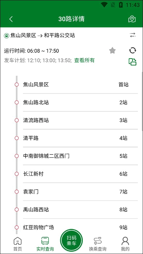 现在我们就可以看见这趟公交车的发车时间了。