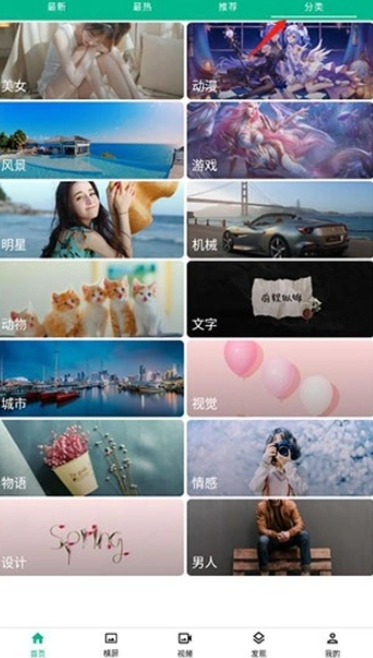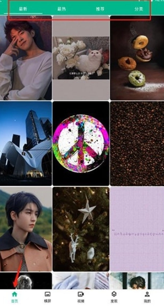 在首页可以看到有最新、最热、推荐、分类等壁纸