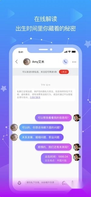 星盘说是一款专业的咨询软件,为您提供精准的星座服务。平台汇聚资深占星师团队,可提供一对一占卜咨询;同时配备专业心理咨询师,随时解答各类困惑。无论您想了解哪方面内容,都能获取专属星座解读报告。借助科学的星象分析系统,带您探索星座背后的奥秘,体验占星的独特魅力。