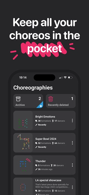 用户能随时查看舞蹈动作和队形的动画演示效果,方便快速调整与优化。 2. 软件具备撤销错误操作的功能,便于对舞蹈编排进行反复修改,以达到更完善的效果。 3. 支持为每位舞者命名,还能设置不同颜色,利于直观地识别和区分。 4. 可将舞蹈编排从传统的纸质形式迁移到数字平台,让用户体验更直观的舞蹈队形设计流程。
