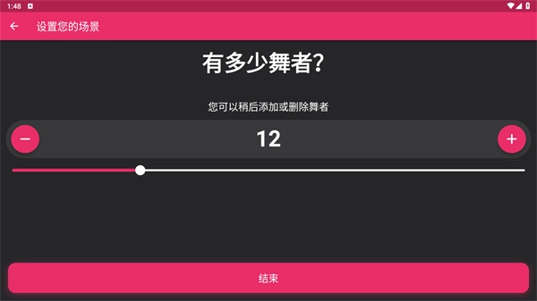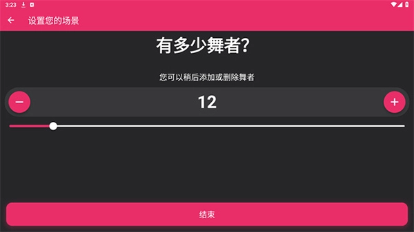 当人数确定好之后,点击结束按钮,就能进入到详细的舞蹈编排界面了。
