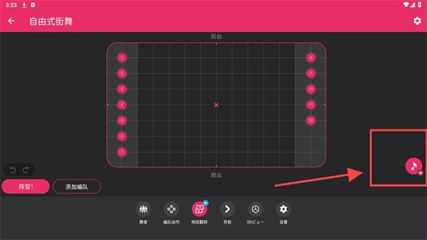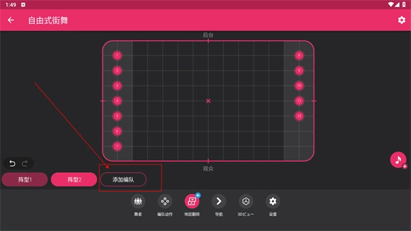 点击添加编队选项,利用系统工具自由创作,就能自动生成舞蹈队形。