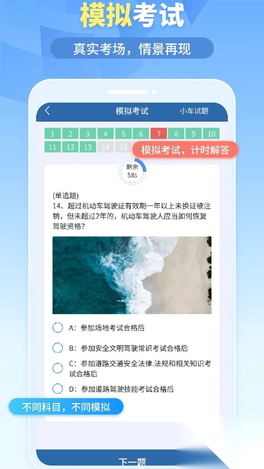 模拟真实的考试情境,提供与实际考试完全一致的练习内容,帮助用户更好地适应考试的时间节奏和流程安排。