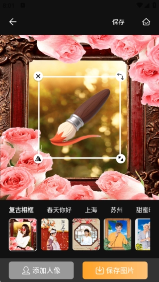 回到首页挑选相框,上传手机里的照片,再选择对应的模板就能完成制作了。