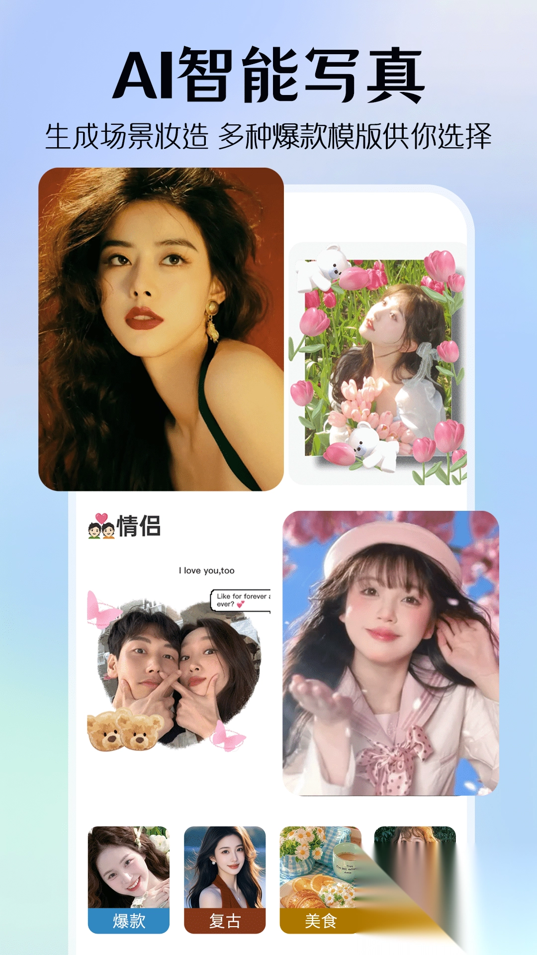 AI修图美颜这款智能修图工具,巧妙融合了人工智能与专业影像技术,核心功能涵盖一键美颜、人像精修、背景优化、风格滤镜等,无论是自拍、人像摄影还是社交分享场景都能适配,让普通用户无需复杂操作就能轻松打造出高级感十足的大片,真正实现了修图的便捷化与普及化!