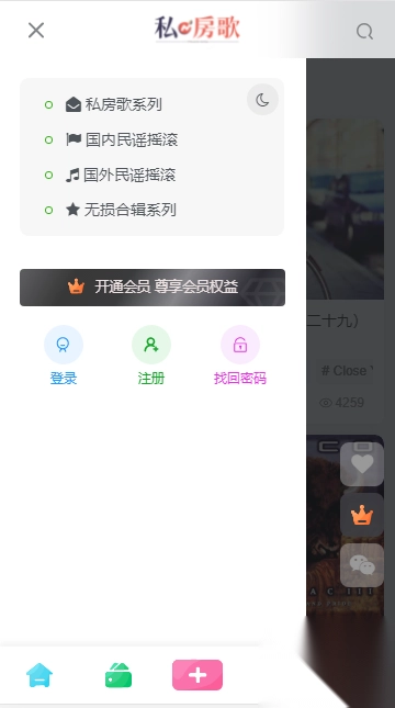 首次使用私房歌时,需要先注册一个免费账户并登录。