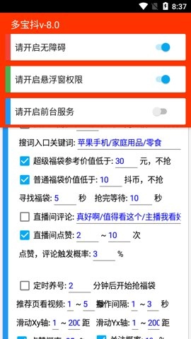 多宝抖是一款专门为热衷于参与各类福袋活动的用户打造的抢福袋工具,它能自动协助用户在相关平台上抢购限时福袋。用户可以自行设置自动抢购的时间,无需手动操作,十分便捷。该软件支持多个不同平台,同时参与多个平台的活动有助于提升中签概率。其界面简洁明了,设置过程简单易懂,不会给用户带来操作压力。感兴趣的朋友,欢迎在本站进行体验。