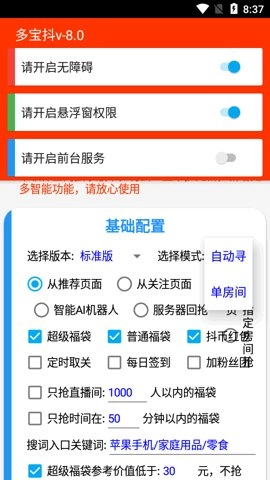 多宝抖是一款专为参与抢福袋活动的用户打造的软件,用户只需通过简单几步完成设置,就能实现福袋的自动抢夺。软件会自动记录每次抢购的详细情况,便于用户随时查看和了解;其反应速度极快,抢夺的精准度也相当高,并且支持多个电商平台的福袋活动,能充分满足不同用户的操作需求。