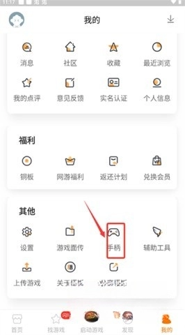 2. 在“我的”页面里,寻找到手柄按钮,点击该按钮来完成连接。