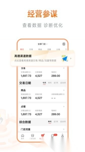 经营参谋配备数据看板功能,能够助力商家诊断门店运营中存在的问题,并据此优化经营策略。