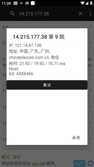 2. 在安卓设备上启动traceroute请求。
