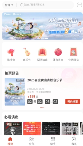 2、无论是演唱会、音乐节还是剧场演出,覆盖全品类的票务资源,确保满足你对多样化观演需求的向往。