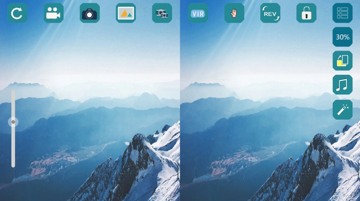 可以实时呈现飞行器设备摄像头所拍摄的画面,并把这些画面传输至手机端供用户查看。