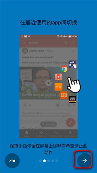最近使用的应用切换器:在浮动圆圈侧边栏中排列您最近使用的应用。从触发屏幕边缘区域滑动一下即可在它们之间切换。