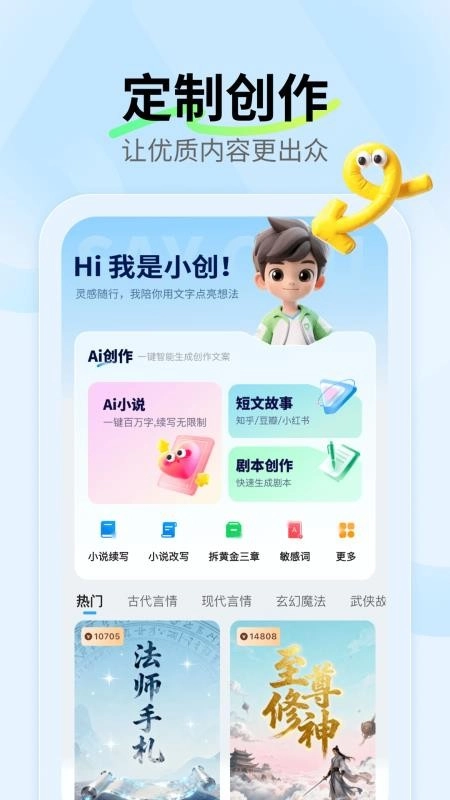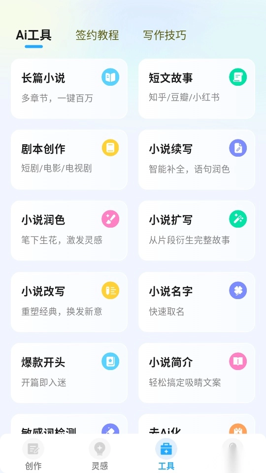 Ai小说神器手机版是一款专为用户提供短剧小说创作的应用软件,软件为用户提供了多元创作工具,这里是集创作工具、教程、签约指南等功能于一体的,用户可以轻松实现小说创作、剧本创作、短文故事创作等等,有效实现零门槛创作,输入关键词就可一键生成,帮助用户智能写作。平台还为用户提供了海量的模版资源,更多风格模版都可选择,轻松汲取创作灵感,清晰自己的创作方向;此外,Ai小说神器免费版还支持用户定制化创作,轻松创作出优质的内容,实时进行文章改写,提高自己的作品质量,有需要的用户就赶紧来本站使用吧!