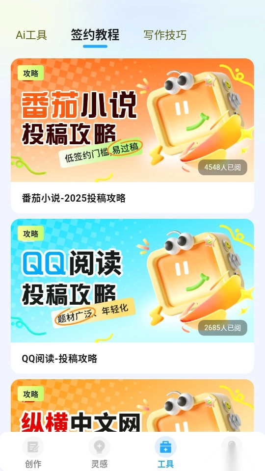 然后在攻略列表里找到番茄小说相关攻略,点击“番茄小说投稿攻略”按钮继续下一步操作。