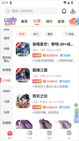 3、平台的游戏库超乎你的想象,覆盖了角色扮演、策略、竞技等八大品类,定期更新榜单,带给你500+款精彩的选择。