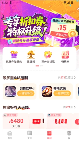 4、平台还推出了摇钱树、多重648福利、优惠券加量包等多种优惠,为玩家提供一站式的福利体验。