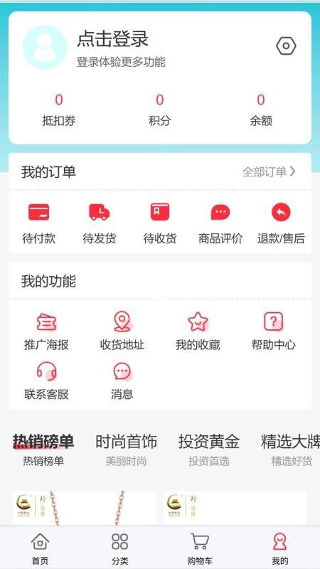 中疆黄金最新版是一款专注于黄金、珠宝、玉石类商品的购物应用,平台内商品分类清晰明了,帮助用户快速定位心仪好物。这里的黄金珠宝首饰款式丰富多元,用户能依据个人审美随心挑选;精选大牌商品均为正品保障,杜绝假货,让消费者安心选购高品质商品。平台还会持续更新新款好物,价格亲民实惠,让用户以超值价格入手心仪商品。此外,软件支持一键收藏功能,方便用户管理喜欢的商品,下次购买更快捷。有需求的用户不妨下载中疆黄金手机版体验使用!