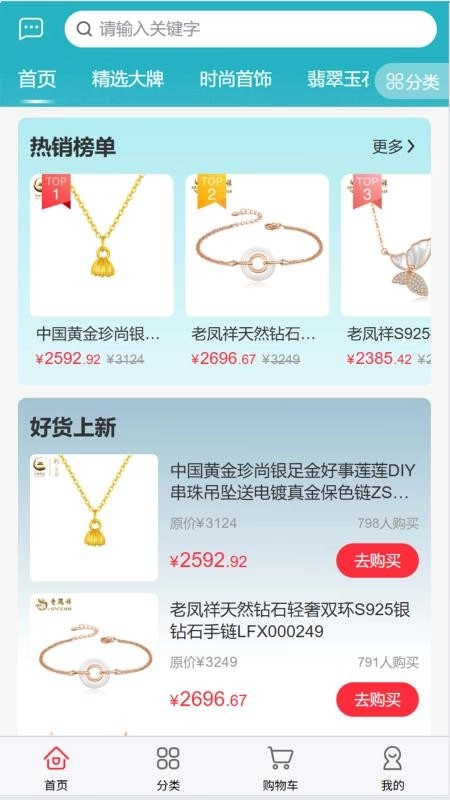 把商品划分成时尚首饰、翡翠玉石等不同类别,让用户能更便捷地找到自己喜欢的商品。