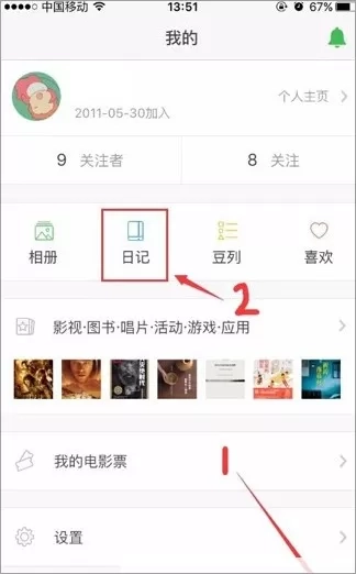 然后首先进入“我的”这一项。之后可以看到“日记”。