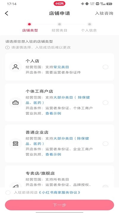 在店铺申请界面,按照系统给出的提示,一步步进行操作,完成所有步骤后就能成功开店了。