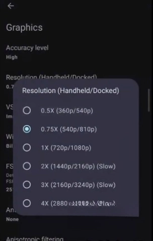 3、分辨率调至较低的0.75倍将提升性能表现;低端手机用户甚至可选择0.5倍以获得更佳流畅度。