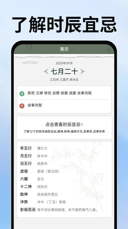 非常详细且专业的黄历信息,在应用中可一目了然,知道每天适宜和不适宜做的事;