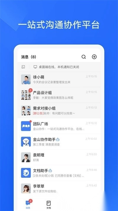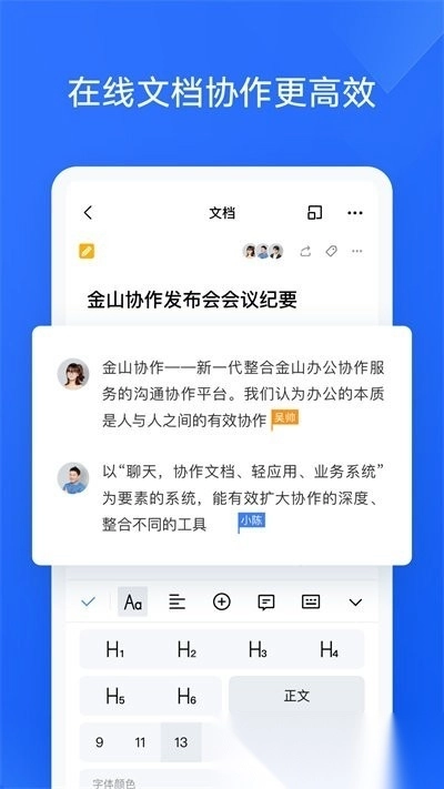 【金山会议】聊天中一键入会,会议中共享文档、同步协作,视频通话稳定流畅;