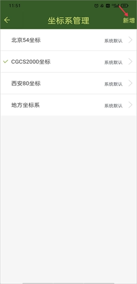 在这个页面里,你能够查看多个地点的坐标系,之后点击右上角的“新增”按钮。