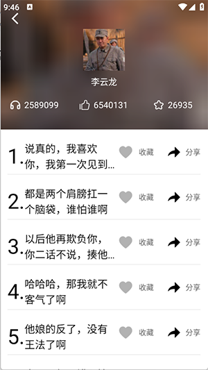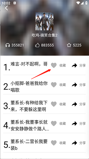 3、点开喜欢的语音包,可以播放、收藏以及分享等。