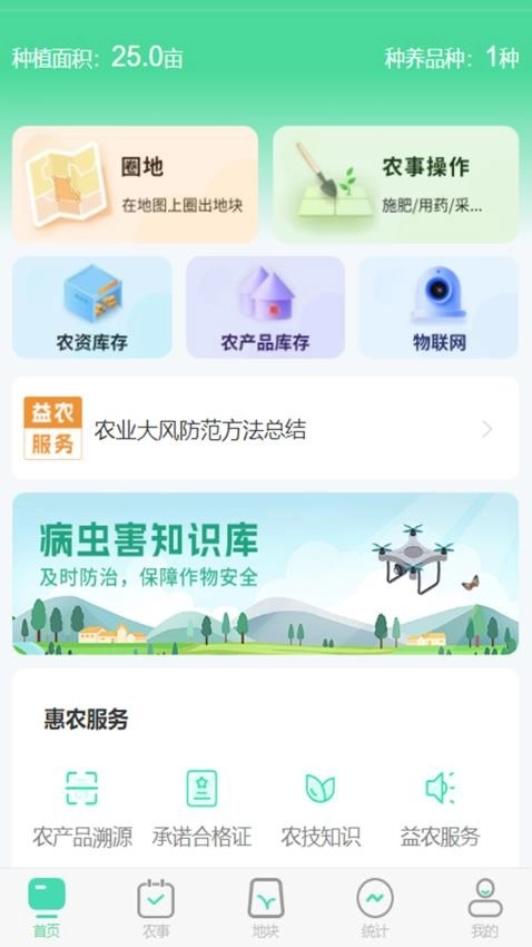 这是一个非常智能且便捷的农业管理平台,能助力用户轻松高效地打理农场事务。它可以快速记录和管理各类农事活动,使用起来十分便捷。此外,平台还能连接物联网设备,对农场的农业生产种植状况进行远程监控,让用户直观掌握各类农作物的生长情况。同时,平台还提供了丰富的惠农服务,进一步让用户经营管理农场变得更加轻松方便。