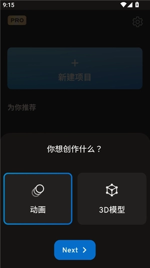 在本页面找到Prisma3D中文版,完成安装并打开应用后,第一步先选择你想要创作的类型,例如点击“3d模型”选项,接着进行下一步操作。