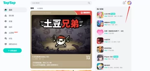 1、打开taptap,点击右上角的头像。