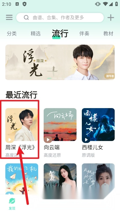 点击进入该曲目的详细曲谱页面;