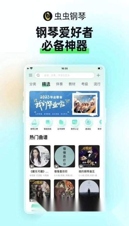通过分类浏览或搜索找到你感兴趣的钢琴曲目;