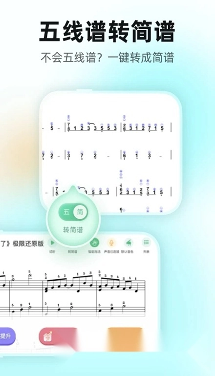 【智能曲谱】全新上线的智能曲谱功能,可实现一键切换简谱、自由调节演奏速度、灵活改变曲调等便捷操作。
