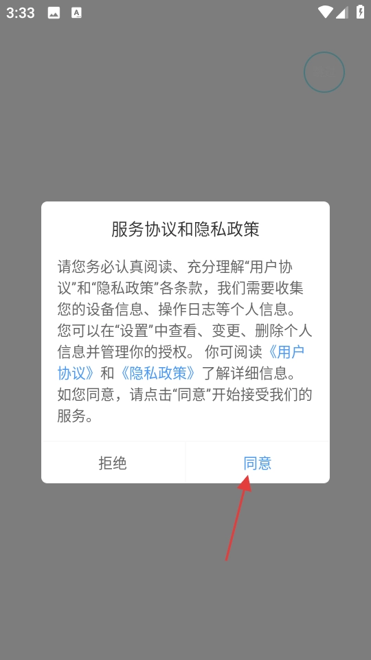 打开哈哈喵,点击【同意】接受服务协议和隐私政策。