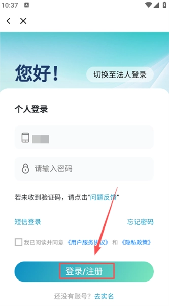 在页面填写好信息后点击登录/注册按钮,软件就会自动完成注册操作。